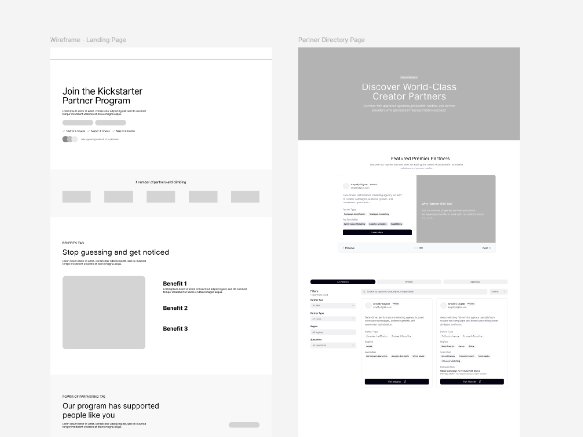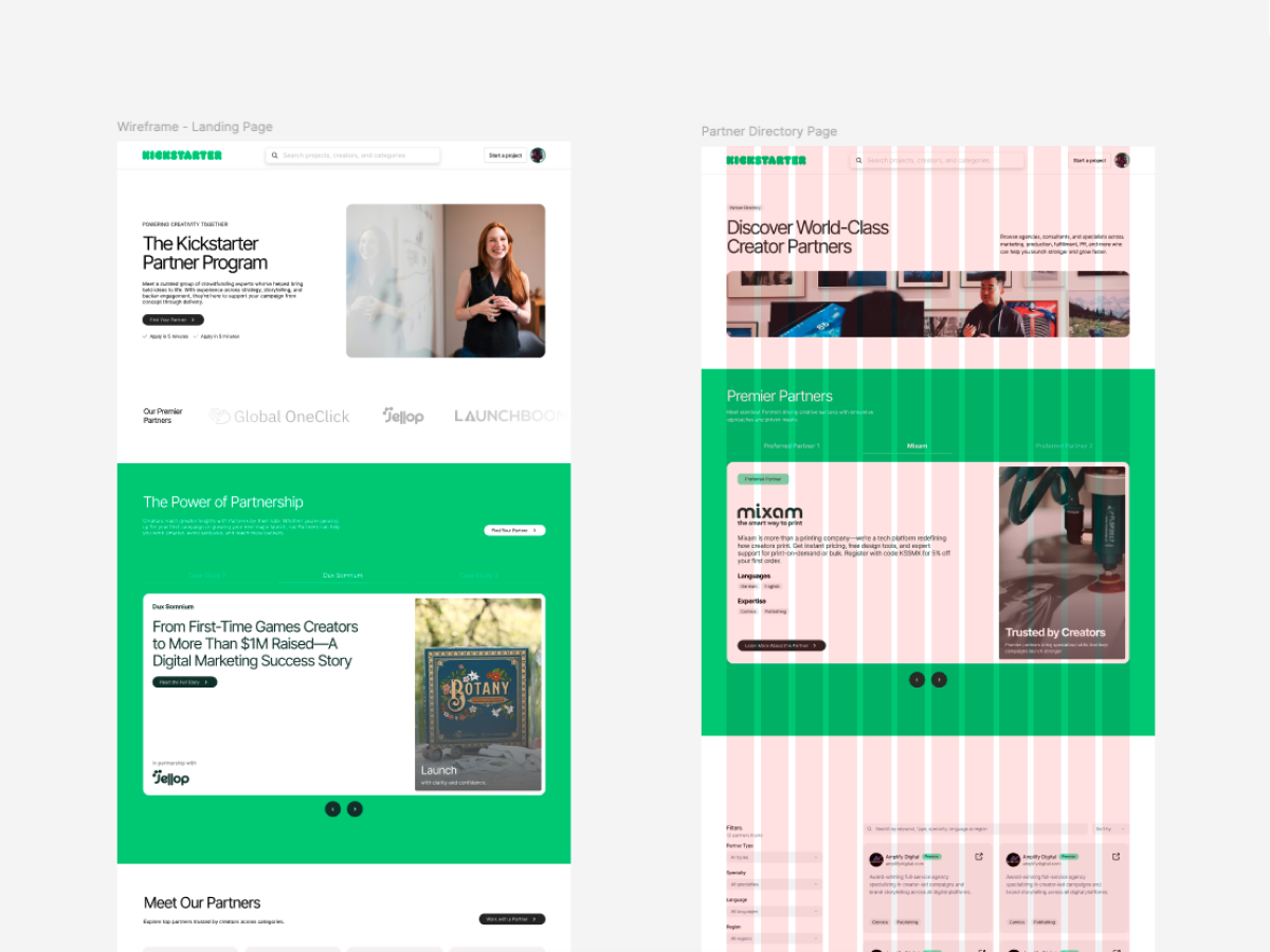 Kickstarter approached us to redesign their partner program and design a new landing page they could use to promote it. In the past, they had launched this using a basic list approach but wanted something much more future-proof and user-friendly.